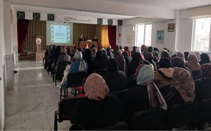 Saraykent ilçe Müftülüğü bünyesinde “Peygamber ve aile hayatı” konulu konferans gerçekleştirildi. Konferansa hanımların ilgisi yoğundu. Programda emeği geçen kuran kursu hocalarımıza ve katılım sağlayan tüm hanımlara teşekkür ederiz.