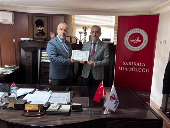 Sarıkaya Kaymakamımız Sayın Mubin Demirkıran tarafından verilen Üstün Başarı Belgesi, İlçe Müftümüz Sayın Zühdü Elveren tarafından Müftülük Şefi Mehmet Polat ve Zinnureyn Erkek Hafızlık Kur’an Kursu Müdürü Ahmet Yıldırım’a takdim edildi.