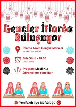 10.03.2026 Salı günü İmam-ı Azam Gençlik Merkezinde liseli kız öğrencilere yönelik iftar programı düzenlendi. Katılım sağlayan öğrencilerimize, desteklerini eksik etmeyen hayır sahiplerine teşekkür ederiz.