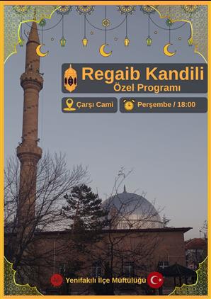 Regaip Kandili Özel programı Çarşı Caminde gerçekleştirilmiştir.
